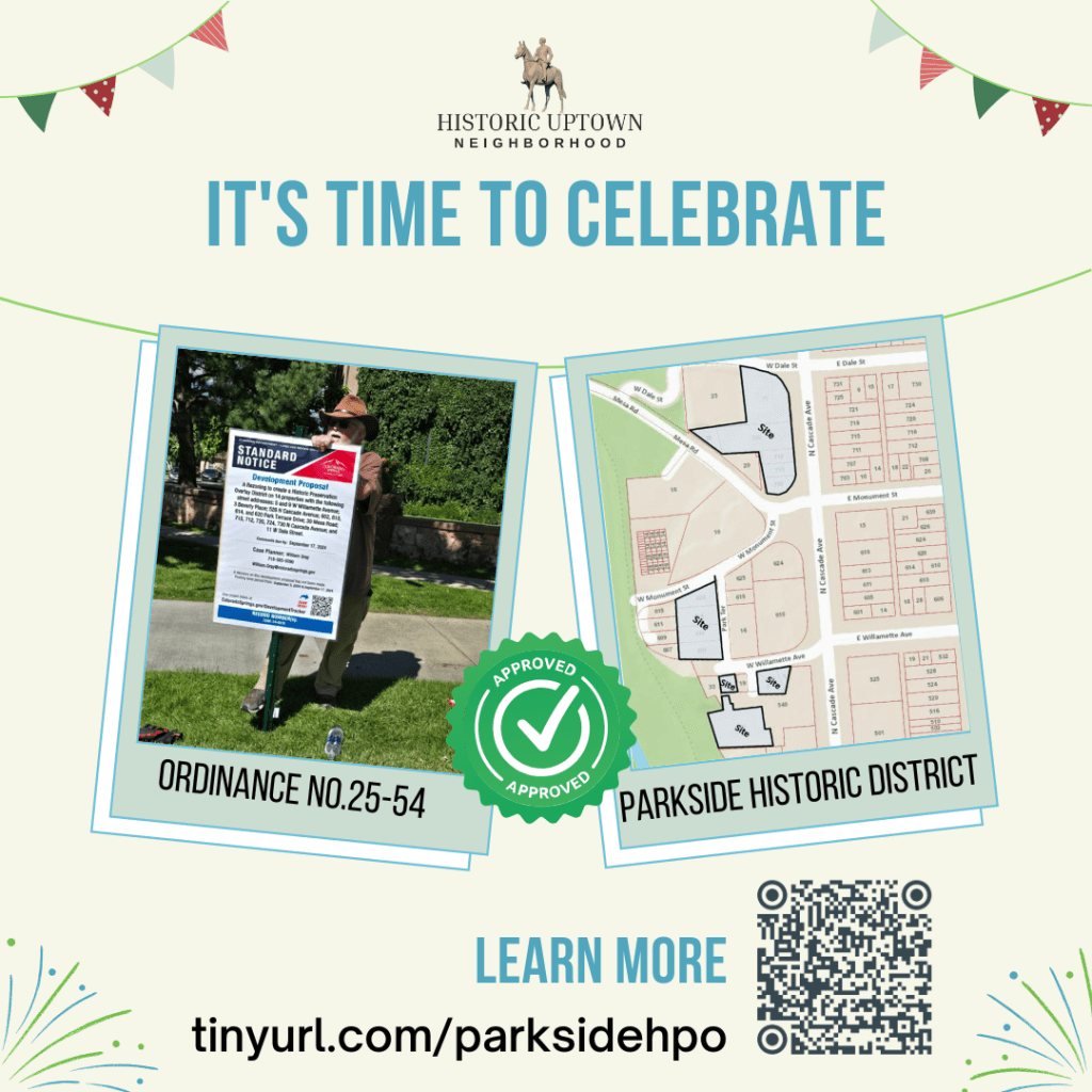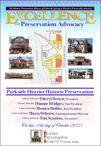 On October 15, 2025, the Historic Preservation Alliance presented the Historic Uptown Neighborhood Association with an award for our efforts in preserving the Parkside Neighborhood with a Historic Preservation Overlay. Learn more on the HPA website.