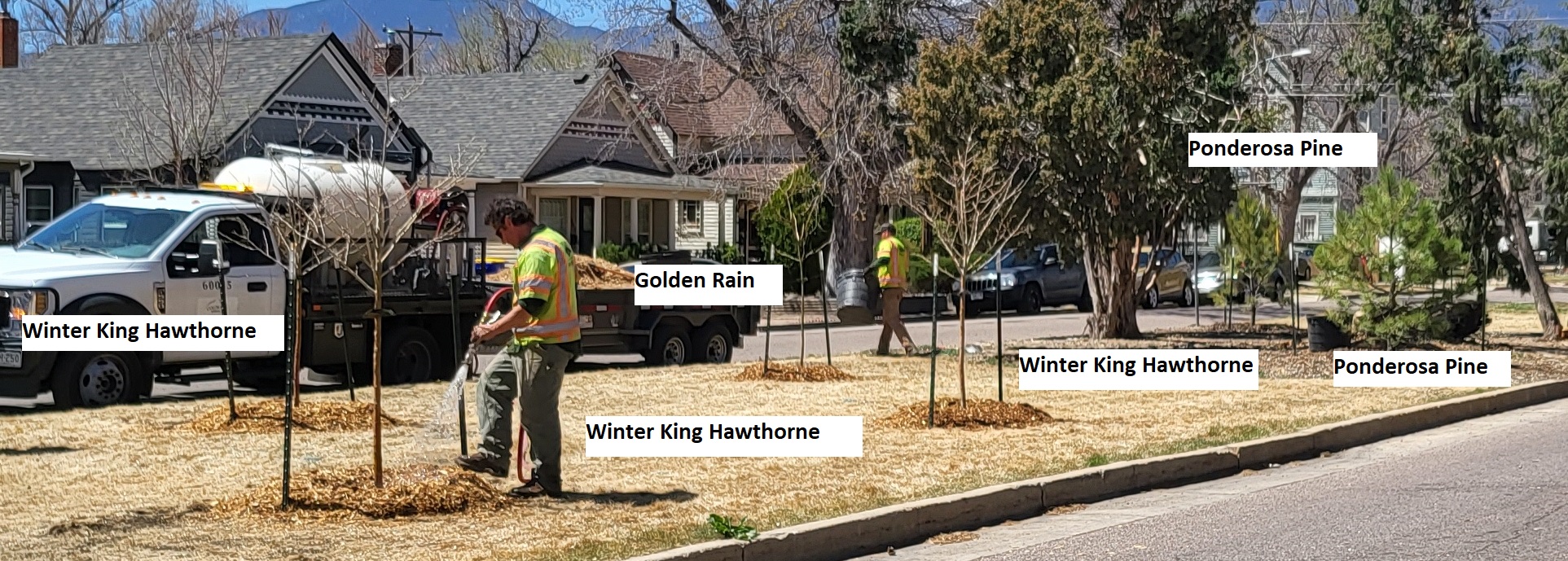 These new trees serve as vital tree canopies for Colorado College, Palmer High School, and our entire neighborhood, contributing to the mitigation of urban heat and significantly improving our local environment. It’s a symbol of our collective dedication to creating a greener, more sustainable future for our neighborhood and the planet.